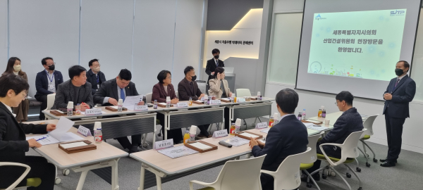 [충청뉴스 최형순 기자] 9일, 세종특별자치시의회 산업건설위원회는 현장의 목소리를 듣고 애로·문제점을 파악하여 선제적인 의정활동을 하기 위하여 (재) 세종테크노파크 (원장 양현봉, 이하 세종 TP) 미래 융합산업센터를 방문하였다.