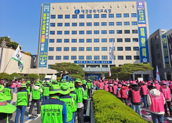 이들은 이 자리에서 실질임금 인상, 복리후생 차별철폐, 산재대책 마련, 방학 중 출근일 보장 등을 요구했다.