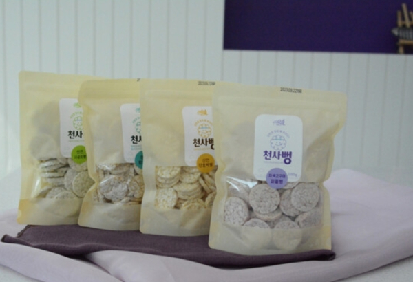 천사뻥은 초록빛의 시금치를 넣은 “시금치뻥”과 보랏빛의 자색고구마를 첨가하여 만든 “퍼플뻥”, 노란빛의 단호박을 넣어 만든 “단호박뻥”, 짭조름한 함초를 넣어 만든 “함초뻥”4종으로 구성됐다.
