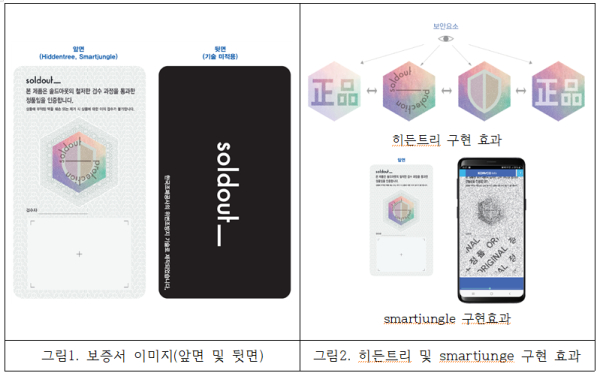 ‘솔드아웃’에 적용되는 브랜드보호 솔루션에는 잠상 보안패턴 및 스마트기기 인식용 보안패턴이 적용되었다고 조폐공사는 설명했다. 잠상 보안패턴은 보는 각도에 따라 정품(正品)이라는 숨은 글씨를 확인하여 원본의 진위 여부를 손쉽게 확인 할 수 있으며, 스마트기기 인식용 보안패턴은 소비자들이 조폐공사의 앱인 ‘수무늬’를 통해 숨겨진 문양을 확인하여 추가적인 진위여부를 판단할 수 있다.
