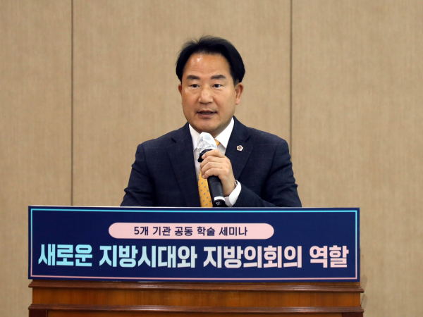 [충청뉴스 최형순 기자] 상병헌 세종시의회 의장은 27일 정부세종컨벤션센터에서 열린 '새로운 지방시대와 지방의회의 역할을 주제'로 열린 5개기관 공동학술세미나에서 환영사를 통해 "지역이 주도하는 자율적인 발전이 이루어져야 한다"고 주장했다.