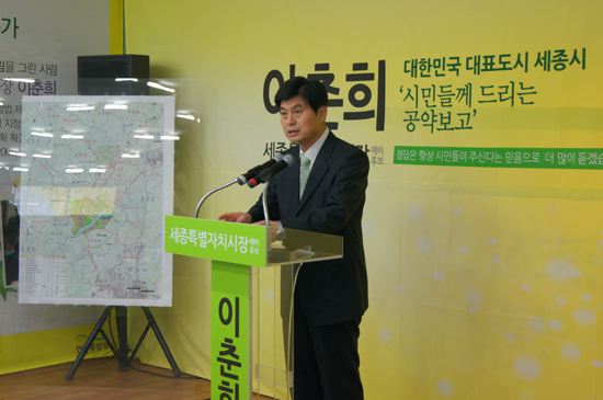 민주통합당 이춘희 세종시장 예비후보는 지난 번에 세종시를 ‘대한민국 대표도시’로 만들기 위해 준비한 정책들을 보고드린 데 이어 오늘은 청사 이전 등의 문제로 공동화를 걱정하고 계신 조치원지역 주민분들을 위해 준비한 정책보고회를 가졌다.