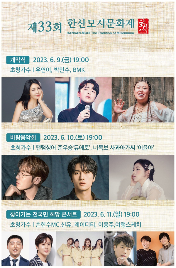 서천군, 한산모시문화제 초청 가수 라인업 확정