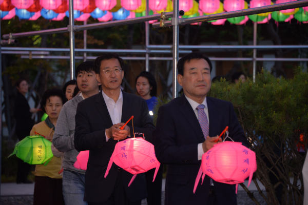 이날 연등 점등식은 부처님 오신 날을 맞아 불자 및 지역주민들에게 부처님의 지혜와 자비의 광명이 곳곳이 전해지는 메시지를 담아 열렸다.