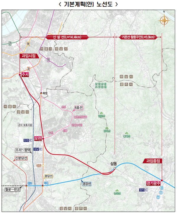 수서∼광주 복선전철 사업은 총사업비 1조 1,103억 원을 투입하여 2030년 완공을 목표로 추진하며 총 구간은 19.4km로 수서∼삼동 14.4km는 복선으로 신설하고 삼동∼경기광주 5.0km는 기존선을 활용할 예정이다. 정거장은 2개소(수서, 모란)를 신설하고 기존 1개소(경기광주)는 개량한다.