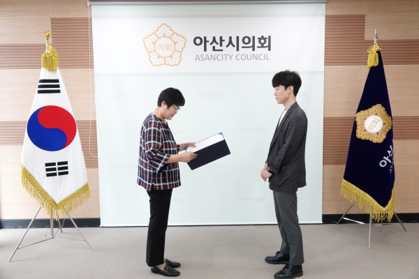 김희영 아산시의회 의장은 “의회사무국 직원과 함께 환영하며, 직원 간 협력과 배려 속에 의회 업무에 잘 적응하고 역량을 발휘해 주길 바란다”며 “정책지원관으로서 의원들과 호흡을 잘 맞춰 시민이 만족할 수 있는 아산시의회가 될 수 있도록 최선을 다해 달라”고 당부했다.
