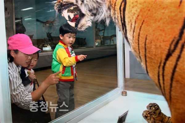 ▲ 어린이들이 호랑이 박제를 보며 신기해하고 있다.
