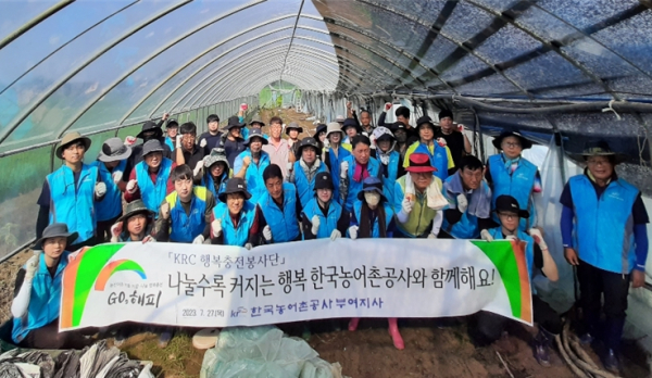 이날 봉사활동은 전 직원이 참여한 가운데 지난 집중호우로 피해를 입은 부여 세도면 비닐하우스 재배 농가를 찾아 폐비닐 걷기 및 토사 등을 정리하는 작업을 펼쳤다.