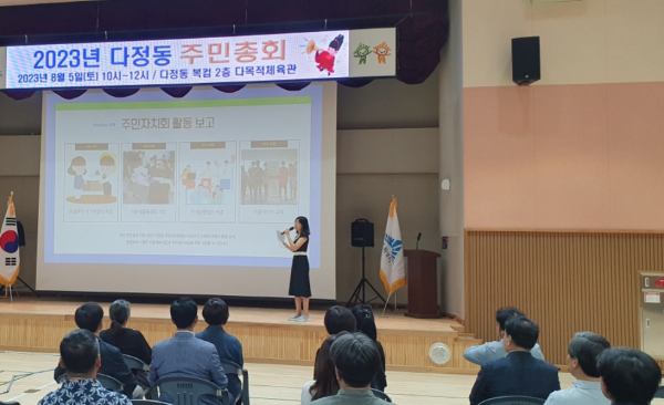 [충청뉴스 최형순 기자] 세종특별자치시 다정동 주민자치회(회장 신지혜)가 지난 5일 다정동 복합커뮤니티센터에서 200여 명의 주민이 참석한 가운데 주민총회를 개최했다.