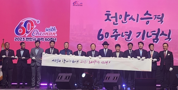 정도희 천안시의장은 “천안시 승격 후 60년 동안 천안의 발전과 시민의 행복을 위해 숨 가쁘게 달려왔다”며 “앞으로도 명품 도시 천안을 위해 지역의 정체성을 잃지 않으며 천안 시민 모두가 행복할 수 있도록 열심히 노력하겠다”고 다짐했다.