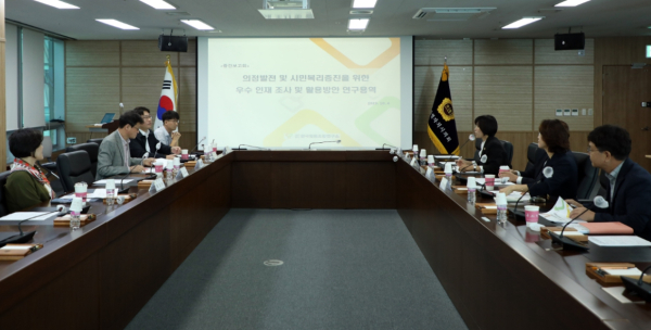 [충청뉴스 최형순 기자] 세종특별자치시의회(의장 이순열)는 4일 의회 청사 의정실에서 ‘행정·연구 우수 인재 활용 플랫폼 구축 연구모임(대표의원 김현옥)’ 제5차 간담회를 개최하고 ‘의정 발전 및 시민 복리증진을 위한 우수 인재 조사 및 활용방안 연구용역’ 중간보고회를 개최했다.