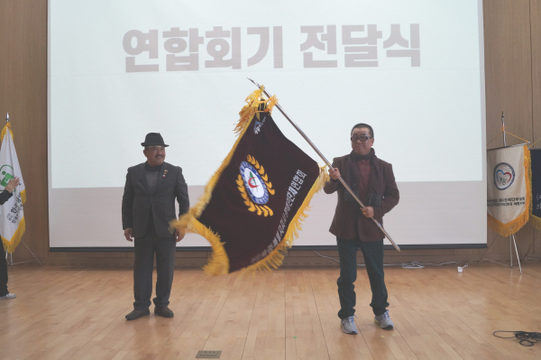 이날 행사는 그동안 세종시장애인단체연합회를 이끌어온 제8대 박치온 회장에게 공로패를 전달하는 것을 시작으로, 이임사, 연합회기 전달, 윤강일 신임회장의 취임사 및 축사 등의 순으로 진행됐다.