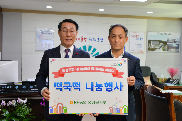 [충청뉴스 권상재 기자] 홍성군은 NH농협 홍성군지부(지부장 김종수)가 29일 홍성군청을 방문하여 150만 원 상당의 떡국떡 2,000kg(2kg,100개)을 기탁했다고 밝혔다.