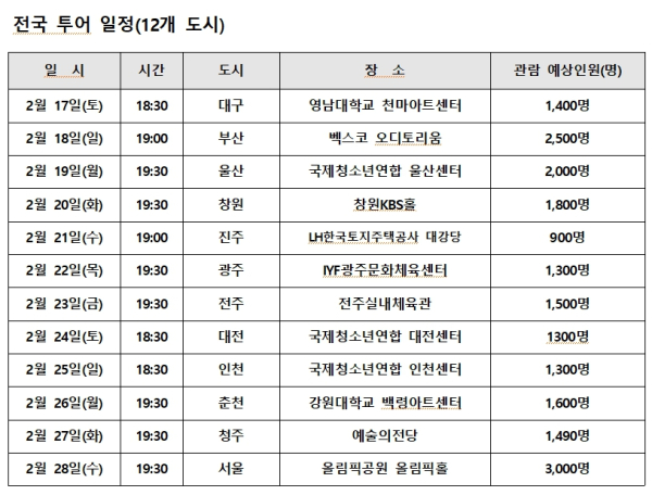 - 국내 12개 도시 순회 중 24일 대전, 27 청주서 선보여
