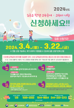 [충청뉴스 최형순 기자] 세종시교육청은 저소득층 가정의 경제적 부담을 경감하고 균등한 교육 기회를 보장하기 위해 3월 4일부터 22일까지 ‘교육급여(교육활동비)・교육비 지원 집중 신청기간’을 운영한다.