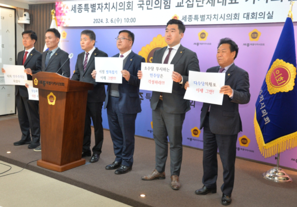 [충청뉴스 최형순 기자] 세종특별자치시의회 국민의힘 의원 6명은 6일 기자회견을 통해 “다수당의 오만한 독주가 멈출 때까지 최선을 다해 맞서 싸우겠다”라고 밝혔다.