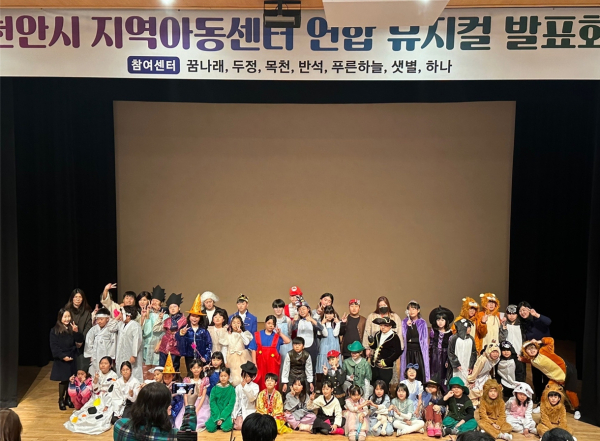 [충청뉴스 최형순 기자] 지역주민과 소통하는 '천안시 지역 아동센터 연합 뮤지컬 발표회'가 성공적으로 실시되어 주민들로부터 ‘큰 호응’을 얻었다.