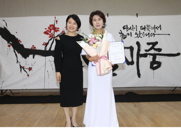 변규리 회장(좌), 공로상 수상자 박미애 고문과 함께