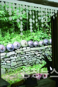 실제 한옥 주변으로 다양한 모양의 항아리가 놓여 있었다. 모두 400여 개인데, 박 관장이 전국을 다니며 직접 모은 것들이다. 돌담도 박 관장이 직접, 하루에 1m씩 쌓았다고 한다.