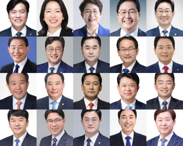 (사진 왼쪽부터)조승래, 황정아, 박정현, 장종태, 박범계, 박용갑, 장철민, 김종민, 강준현, 성일종, 강승규, 어기구, 장동혁, 복기왕, 강훈식, 문진석, 이재관, 이정문, 박수현, 황명선 당선인
