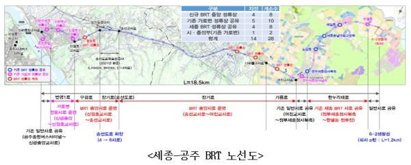 - 세종-공주 BRT 노선 올 하반기 착공~25년 하반기 운행 목표