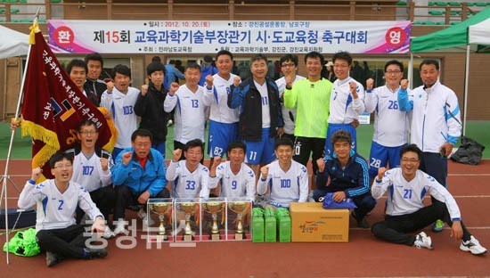 충남교육청(교육감 김종성)이 지난 20일 전남 강진군에서 개최된 제15회 교육과학기술부장관기 전국 시도교육청 교직원 축구대회에서 우승을 차지했다.