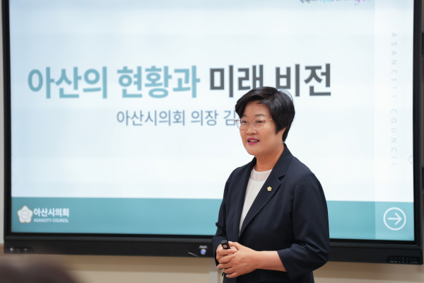 김희영 의장은 이날 선문대학교에서 열린 ‘아산시 현황과 미래 비전’ 아산학 강의에서 "아산시는 인구와 함께 일자리 등이 지속해서 증가하고 있다"며 이같이 밝혔다.