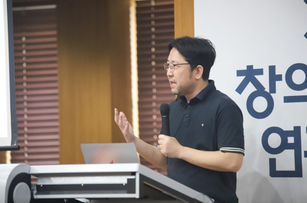 김 대표는 강의에 나서 생성형 AI 기본원리와 응용사례를 설명했다.