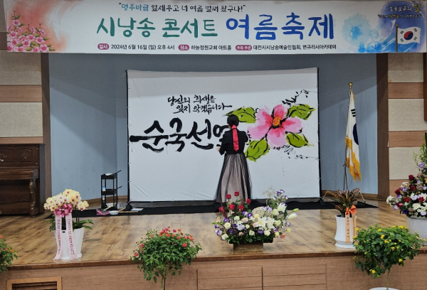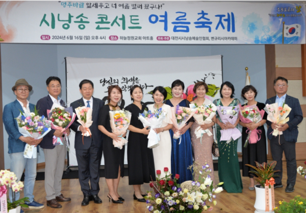 [충청뉴스 최형순 기자] 대전시낭송예술인협회(회장 변규리)는 16일 대전 유성구 은구비로에 있는 하늘정원교회 아트홀에서 호국보훈의달을 맞이하여 “시낭송 콘서트 여름축제”를 개최했다.