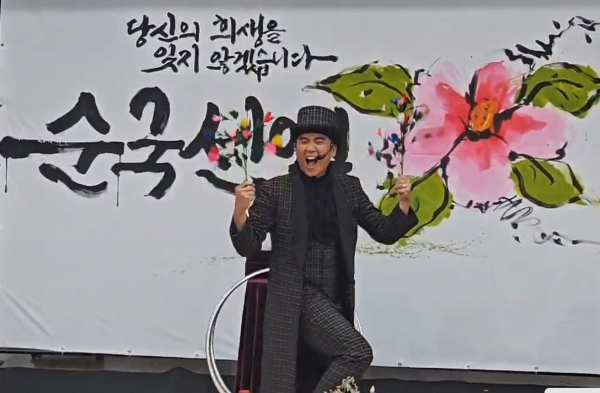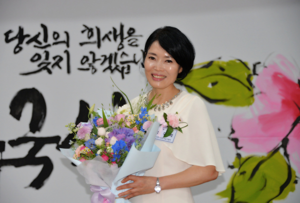 이날 식전 행사로 김순자 캘리디자인연구소 대표가 “당신의 희생을 잊지 않겠습니다. 순국선열”이라는 캘리그라피 퍼포먼스를 선보여 참석자로 부터 감동의 엄지척을 받았다.