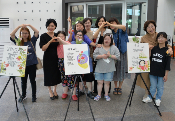 유성구장애인종합복지관(관장 김영근) 7명의 장애인들이 ‘마음 쉼 시낭송’ 수업을 통하여 익힌 시를 직접 그림과 글로 표현한 작품 7점을 1일~5일까지 유성구청 1층 로비에 게시돼 구민들로부터 큰 호응을 얻은 가운데 성공적으로 마무리 했다.