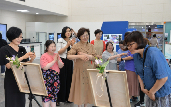 최옥술 의원, 변규리 원장과 우지원 강사,  이혜영 팀장, 작품을 낸 장애우 학생들과 함께