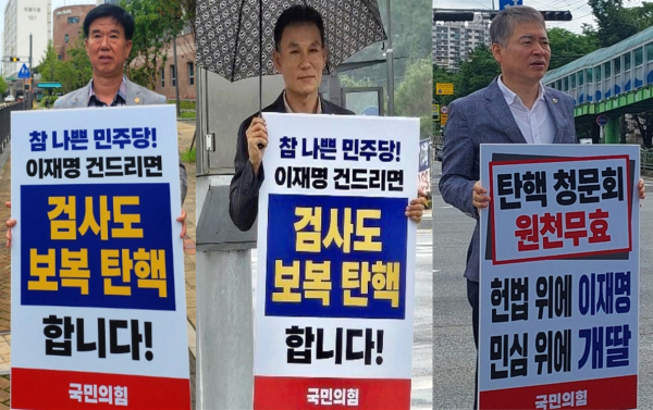 이어서 17일부터는 절차도 무시하고 민주당 독단으로 추진하고 있는 탄핵청문회와 관련해 ‘탄핵청문회 원천무효, 헌법 위에 이재명, 민심 위에 개딸’,‘이재명 위해 불법 탄핵 청문회 합니까’ 등의 내용이 담긴 피켓시위를 수시로 이어가고 있다.