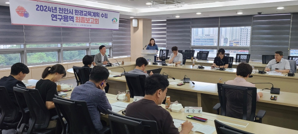 [충청뉴스 최형순 기자] 천안시는 31일 시청 중회의실에서 2024년부터 2028년까지 5개년에 대한 ‘환경교육계획 수립 연구용역 최종보고회'를 개최했다.
