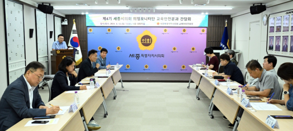 [충청뉴스 최형순 기자] 세종특별자치시의회(의장 임채성) 교육안전위원회(위원장 윤지성)는 12일 의회 청사 1층 대회의실에서 의정모니터단 교육안전분과와 간담회를 가졌다.