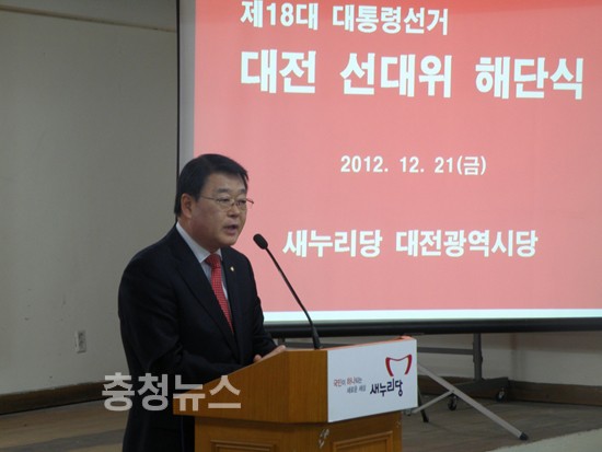 대전선대위는 21일 오전 새누리당 대전시당에서 선대위 해단식을 갖고 “박근혜 당선자를 지지하지 않았던 반대편의 마음을 보듬어야 국민대통합을 이룰 수 있다”고 강조했다.