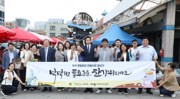 [충청뉴스 최형순 기자] 세종특별자치시의회(의장 임채성)는 추석 연휴를 맞아 상인들의 고충에 귀를 기울이고 지역경제를 활성화하고자 12일 조치원읍 세종전통시장과 금남면 세종대평시장을 방문했다.