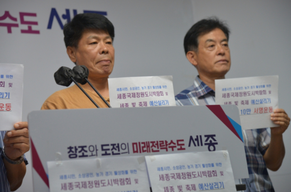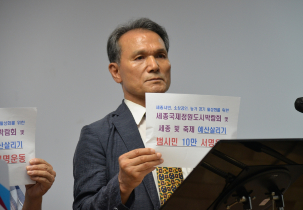 이성용ㆍ손희옥 비대위공동위원장을 비롯한 이현주 비대위부위원장, 채재학 집행위원장, 시민들은 "세종시민, 소상공인, 농가 경기 활성화를 위해 ‘26 세종국제 정원도시박람회 및 세종 빛 축제 예산을 편성하여야 한다"고 주장했다.