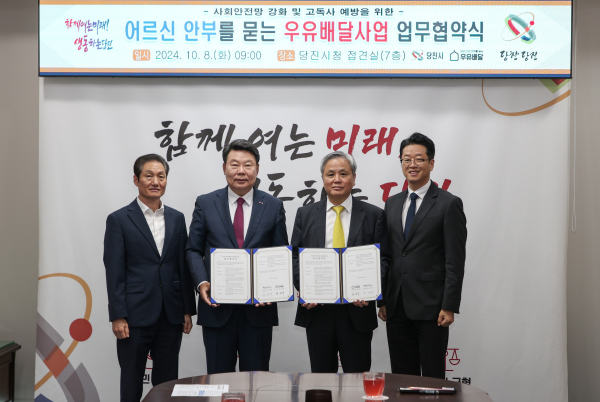 [충청뉴스 권상재 기자] 당진시와 사단법인 ‘어르신의 안부를 묻는 우유 배달’은 8일 시청 접견실에서 ‘어르신의 안부를 묻는 우유배달 지원사업’ 협약을 체결했다.