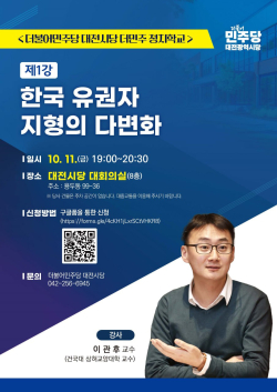 [충청뉴스 김용우 기자] 더불어민주당 대전시당은 당원들의 정치 역량 강화와 정치 신인 육성을 위해 '대전시당 더민주정치학교'를 개설하고 11일 첫 강의를 시작한다.