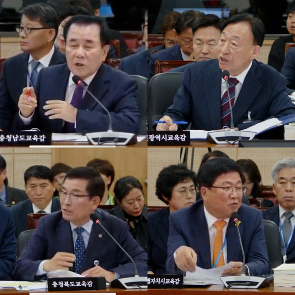 국회 교육위원회는 18일 충북대학교에서 충남(김지철 교육감), 대전(설동호 교육감), 세종(최교진 교육감), 충북(윤건영 교육감)교육청을 대상으로 국정감사를 실시했다.