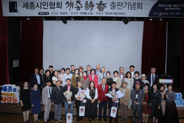 [충청뉴스 최형순 기자] 세종시인협회는 지난 19일 세종시청자미디어센터에서 제9집 동인시집 출판기념회를 성황리에 개최했다. 이번 동인시집은 28명의 시인들이 참여해 총 116편의 작품을 수록하였으며, 세종시문화관광재단의 전문예술지원사업을 통해 발간되었다.