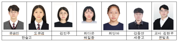 지난 9월 ‘제45회 학생과학발명품경진대회’에서 한솔고등학교 김예원 학생이 국무총리상을 수상한 데 이어, 이번 ‘제70회 전국과학전람회’*에서는 전의중학교 오아시스 모둠(팀)이 국무총리상을 수상하며 세종 교육의 위상을 높였다.