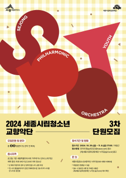 [충청뉴스 최형순 기자] 세종시립청소년교향악단이 지역예술을 선도하는 예술단으로 함께 성장할 참신하고 실력 있는 신규단원을 모집한다.