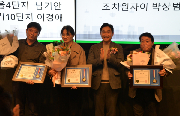 △최민호 세종특별자치시장상 조치원신흥주공2차아파트 김인, 도램마을 10단지아파트 김윤권 △김종민·강준현 국회의원상 (김재형 세종시의회 산업건설위원장 수여) 호려울마을4단지 남기안, 범지기10단지 이경애, 조치원 박상범, △하원선 협회장상 수루배8단지 김유회, 가락마을9단지 전용술 가락마을9단지 전용술 등이다.