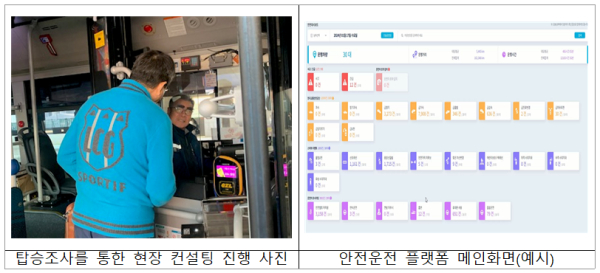 또한, 매월 위험운전행동 다발 운전자를 대상으로 취약요인 컨설팅 및 맞춤형 관리를 진행하여 노선버스 교통사고 예방에 기여하였으며 안전운전 점수, 경제운전 점수 및 위험행동 개선도 등을 고려하여 우수운전자를 선발·포상을 진행하였다.