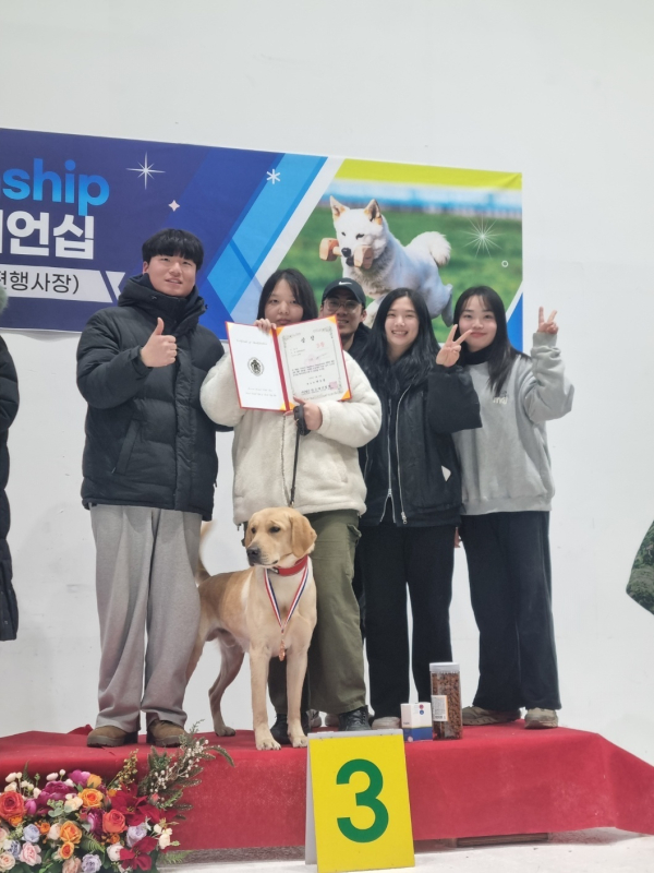 19명의 참가한 중부대 반려동물학부 훈련동아리 '훈련리'에서는 24학번 김나현 학생이 TT1 종목에서 3등을 차지했다.