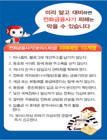 충청우정청 관계자는최근 보이스피싱 사기 유형이 다양하게 발생하고 있고 조금이라도 이상한 전화가 오면 치체없이 우체국 및 경찰서 등 관련기관에 문의하기 바란다”고 당부했다.