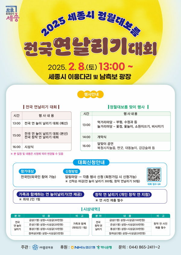 [충청뉴스 최형순 기자] 세종특별자치시는 오는 2월 8일, 시민과 방문객이 함께 즐기는 ‘제2회 전국연날리기 대회’를 이응다리에서 개최한다.
