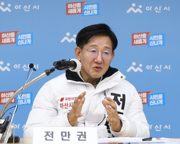 국민의힘 전만권 아산시장 재선거 예비후보가 11일 언론인 간담회를 열고 “초사동 일원 경찰 관련 현안 해결을 위해 행정력을 집중하겠다”고 강조했다.